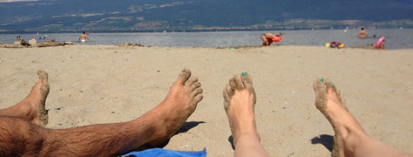 Langweilig wird es uns auf diesem Camping nie! Abends sitzen wir gemütlich am Strand, nehmen einen Apéritiv vor dem Zelt, in der campingeigenen Resto- Bar, oder unternehmen einen Abstecher in das nahegelegene Yverdon-les-Bains und schlendern durch die verwinkelten Altstadtgassen. Wieder zurück essen wir eine feine Glace oder genehmigen uns einen exotischen Drink an der Strandbar zu karibischer Musik. Für spontane Gäste haben wir neben unseren VW Camper ein gemütliches Zweierzelt aufgestellt, mit Matratze. Wunderbar!